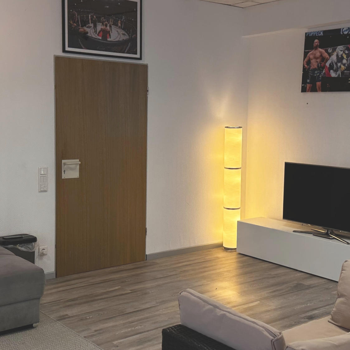 Unser Eingangsbereich lädt zum Ankommen ein. Mit Couch, TV und Chillout- Zone bist du vor oder nach dem Training bestens versorgt. Hier beginnt dein Weg in ein starkes Trainingserlebnis.